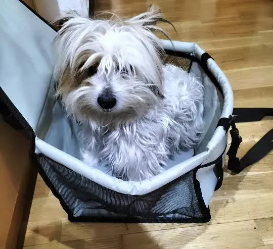 J'aime vraiment utiliser ce siège pour mon chien ! Il le garde en sécurité. Le matériau est solide, et il est pratique à ranger grâce à sa fonction pliable.