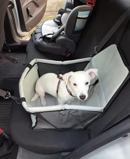 "OMG, j'adore ce siège auto pour animaux ! Mon petit chiot reste super en sécurité pendant que je conduis. Plus de sauts partout et je me sens beaucoup plus concentré sur la route. Facile à accrocher et à plier. Je ne peux plus imaginer les voyages sans lui maintenant😊👍"